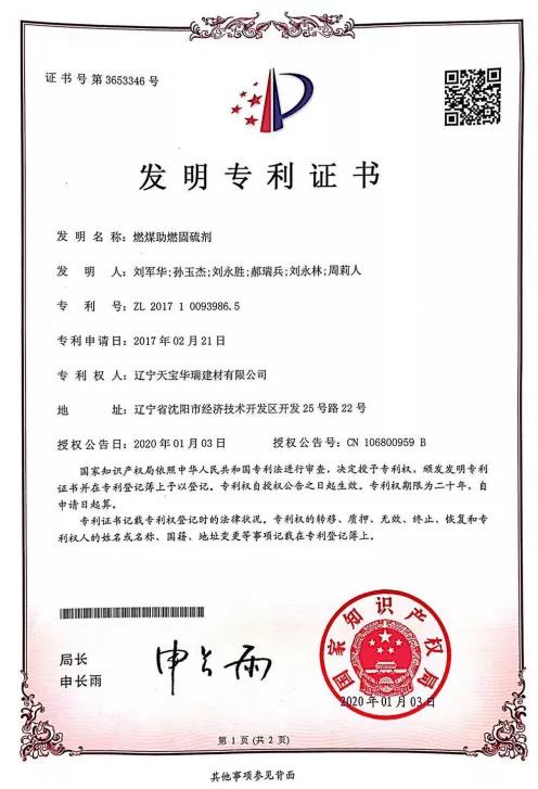 燃煤助燃固硫劑為遼寧天寶的專利產(chǎn)品,據(jù)了解,用戶使用 TB-JMJ 燃煤助燃固硫劑系列產(chǎn)品可使噸熟料實物煤耗(或標(biāo)準(zhǔn)煤耗)降低 2~5%。