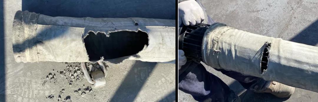 此前,金隅冀東水泥某子公司7500t/d水泥生產(chǎn)線窯頭袋式收塵系統(tǒng)上使用的某品牌濾袋容易破損,在每半年對收塵系統(tǒng)進(jìn)行例行相關(guān)檢查時,都能發(fā)現(xiàn)大約100條左右破損的濾袋。濾袋破損后,粉塵穿過破損部位,造成排放指標(biāo)超標(biāo),同時,濾袋外表面覆膜破損后,粉塵穿過破損部位,容易在濾袋基料內(nèi)堆積,形成“粉餅”,造成濾袋整體透氣性差,使得收塵系統(tǒng)出、入口壓差增高。