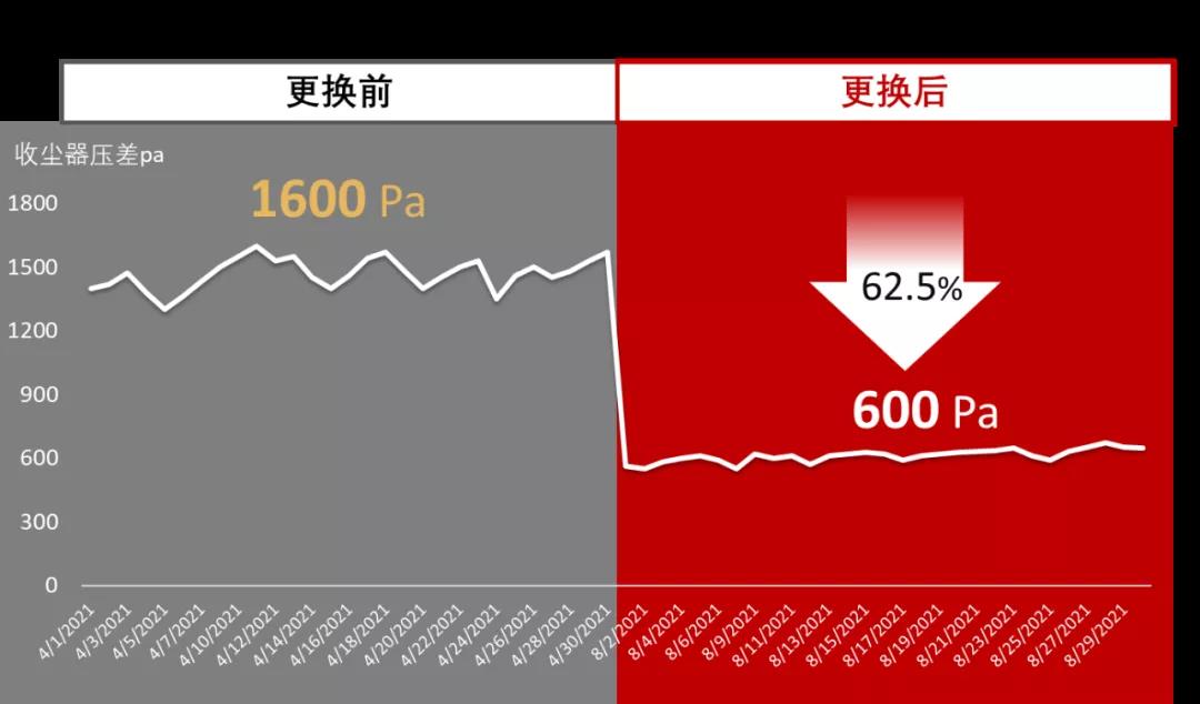 2.收塵系統(tǒng)壓差直降1000Pa!