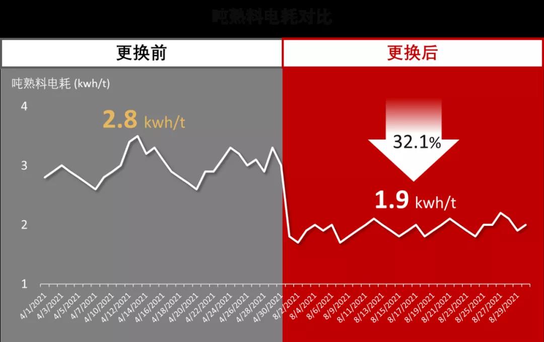 每天可節(jié)電約7390kWh,按照每年生產(chǎn)線運(yùn)行300天計算, 全年僅頭排風(fēng)機(jī)電耗一項(xiàng)節(jié)電約122萬元。