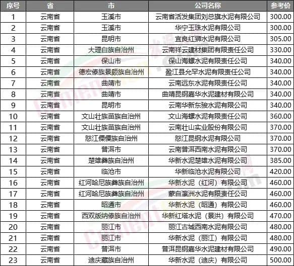 另一相對低價的區(qū)域是云南省,水泥人網(wǎng)重點監(jiān)控的23家企業(yè)中14家企業(yè)報價在400元/噸以下,8家企業(yè)報價在500元/噸以下,僅華新水泥(迪慶)有限公司報價500元/噸。