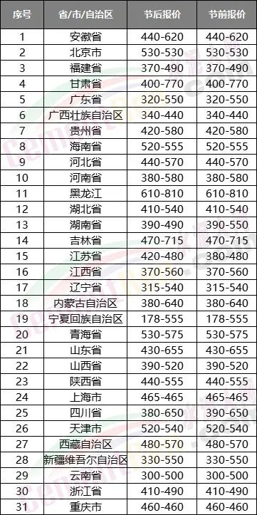 相對高價位,位于京津、黑龍江、青海省以及海南省內。其中黑龍江區(qū)域報價達610-810元/噸,黑河市的兩家企業(yè)黑河關鳥河水泥有限責任公司和黑龍江黑河市恒基水泥有限責任公司報價均達800元/噸以上,哈爾濱、七臺河、伊春、佳木斯主要品牌企業(yè)報價超700元/噸,省其他區(qū)域主要品牌水泥報價也多在600元/噸以上,為31個省市自治區(qū)內的相對高位,超過了北京、天津、青海、海南以及西藏自治區(qū)。