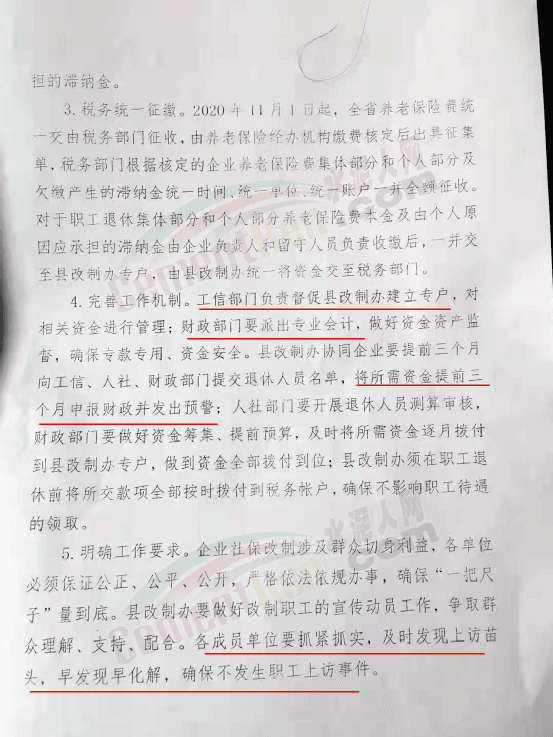 3、離廠后的職工長達(dá)十五六年無人繳納養(yǎng)老金,導(dǎo)致產(chǎn)生大量巨額滯納金。2018年開始,下崗職工不斷通過各種渠道表達(dá)訴求,國家、省市縣各級部門全部反映過訴求,總算答應(yīng)免除滯納金。但退休職工仍然需要墊繳滯納金和本金,滯納金遲遲不退還;
