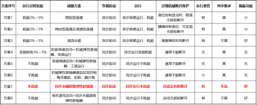 常用柔性聯(lián)軸器方案見下表: