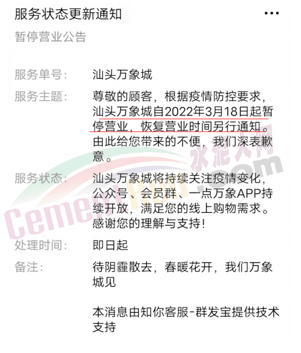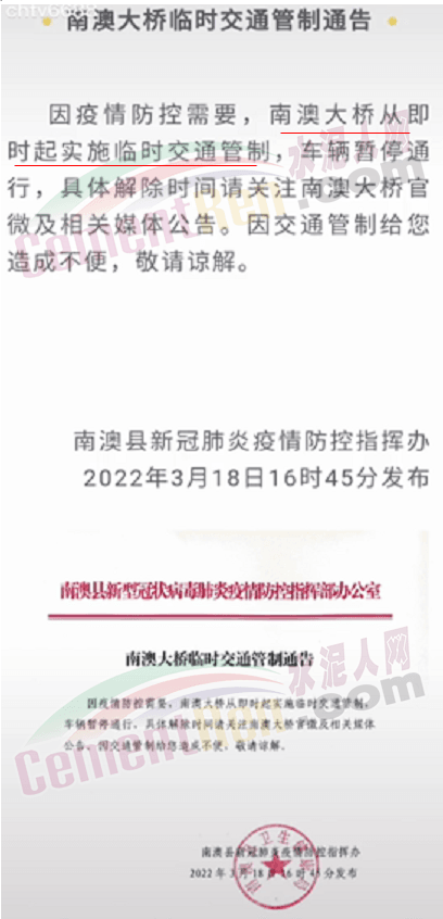 廣東深圳疫情防控指揮部發(fā)布通告稱,3月14日至20日,非城市保障型企業(yè)停止運營或居家辦公,停止一切非必要流動、活動,全市全員進(jìn)行三輪核酸檢測。廣東東莞全面升級防控措施,發(fā)生本土疫情的鎮(zhèn)街(園區(qū)),所有企業(yè)一律停止生產(chǎn)活動;未發(fā)生本土疫情的,實行封閉式管理的產(chǎn)業(yè)園區(qū),在嚴(yán)格落實各項防疫措施的前提下維持基本生產(chǎn)。深莞兩市,除保障城市運行及供港物資貨運的交通外,全市公交、地鐵停運。根據(jù)通告指示,許多倉儲物流企業(yè)暫停運營。深圳市金運達(dá)國際物流表示,自2022年3月14日起,深圳所有倉點暫停辦理進(jìn)出倉業(yè)務(wù);城市國際物流發(fā)布通知稱,東莞集運倉庫自2022年3月16日起,工廠停產(chǎn)停工,在此期間,倉庫暫停收貨、裝箱發(fā)貨。汕頭萬象城通知暫停營業(yè),恢復(fù)營業(yè)時間另行通知。南澳大橋臨時交通管制……