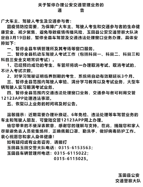 尉氏縣所有省際班線、市際班線、尉氏縣至鄭州線路車輛(鄭州至尉氏縣線路車輛)、市內(nèi)班線(尉氏至開封、尉氏至通許)和縣內(nèi)班線、全縣所有公交車輛、出租(巡游)車輛暫時停運,恢復(fù)時間另行通知。