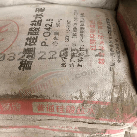 從照片上可見水泥包裝上標(biāo)稱生產(chǎn)企業(yè)為紅獅控股集團(tuán)赫章縣水泥廠有限公司;水泥標(biāo)號分別為P.O42.5普通硅酸鹽水泥、復(fù)合硅酸鹽水泥P.C42.5;噴碼日期為2022年2月。另有一批砌筑水泥生產(chǎn)標(biāo)號日期顯示為2022年1月。凈含量均標(biāo)稱為50kg,包裝袋上印刷的生產(chǎn)許可證為(黔)XK08-001-00049。
