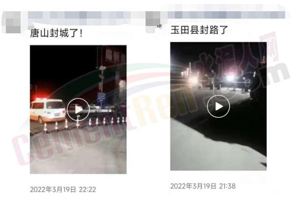 與時同時,有水泥經(jīng)銷商發(fā)消息稱,“唐山封城了”、“玉田封路了”……