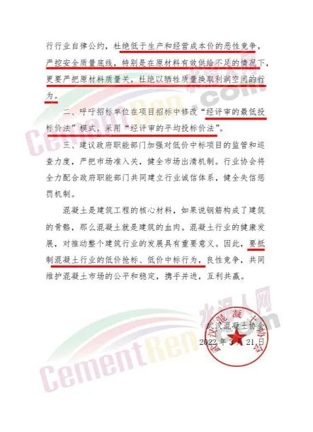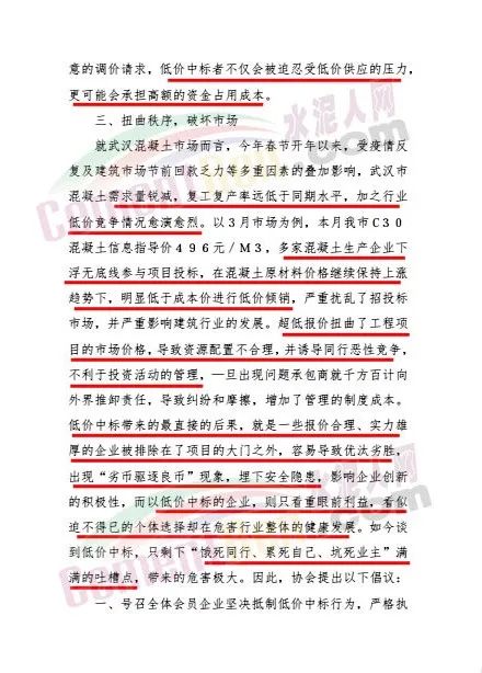 日前,武漢混凝土協(xié)會發(fā)布《混凝土行業(yè)低價中標(biāo)危害及倡議》給會員單位稱,混凝土行業(yè)本就竟?fàn)幖ち?,在交易機(jī)會稀缺的當(dāng)下,為了在激烈的招投標(biāo)競爭中脫穎而出,獲得中標(biāo)資格,不少混凝土企業(yè)選擇了壓低中標(biāo)價格,低價搶標(biāo)。而過往的慘痛教訓(xùn)告訴我們,低價搶標(biāo)這一短視行為,不僅將造成諸多法律風(fēng)險及隱患,更將對這個行業(yè)造成難以挽回的損失。