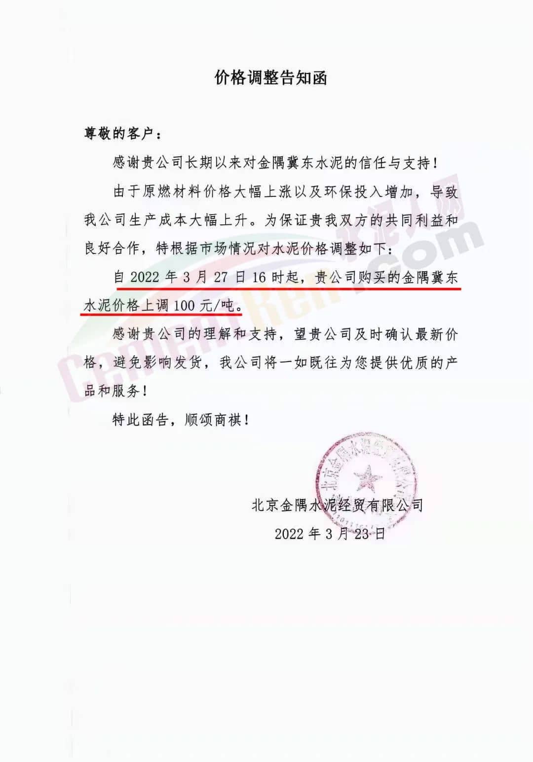 日前,京津唐地區(qū)主要品牌企業(yè)金隅冀東、燕京控股、金馬啟新以及長期銷往京津區(qū)域的天皓水泥通知將于27~30日上調(diào)水泥價(jià)格80-100元/噸。同期保定區(qū)域通知上調(diào)水泥價(jià)格50元/噸。