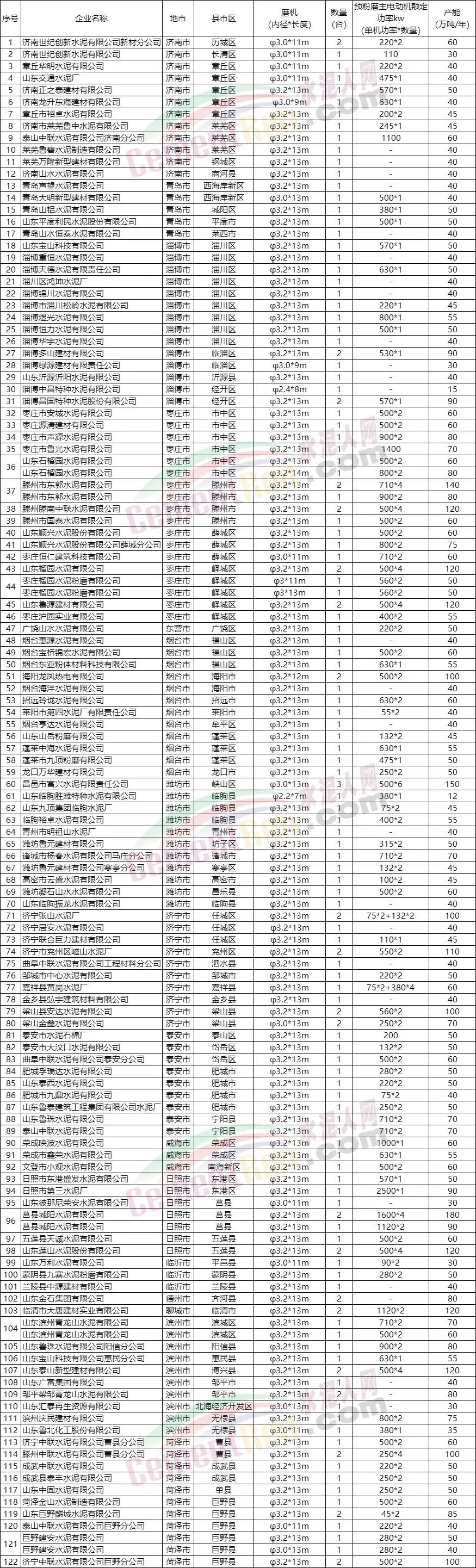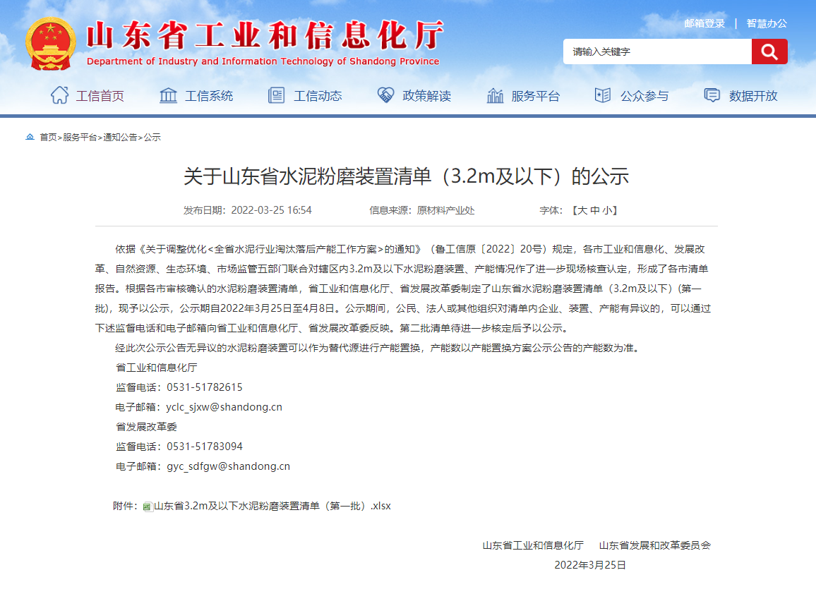 2022年3月25日,山東省發(fā)布了山東省3.2m以下的水泥粉磨裝置清單(第一批)。清單顯示,122家水泥企業(yè)的128臺(tái)3.2m及以下水泥磨機(jī),可作為替代源進(jìn)行產(chǎn)能置換。