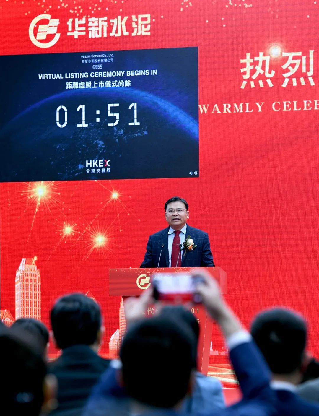 華新水泥公司領(lǐng)導(dǎo)徐永模、劉鳳山、明進(jìn)華、柯友良、杜平、劉云霞、梅向福、楊宏兵、徐鋼、王加軍 、葉家興、胡貞武、張林、盧國(guó)兵、湯峻,華新水泥公司顧問(wèn)王錫明、彭清宇、趙崇光,華新B股轉(zhuǎn)H股項(xiàng)目顧問(wèn)團(tuán)隊(duì)的信達(dá)律師事務(wù)所高級(jí)合伙人麻云燕、德勤華永會(huì)計(jì)師事務(wù)所合伙人龐用及華新水泥員工代表等出席上市儀式。儀式以線上+線下方式進(jìn)行。