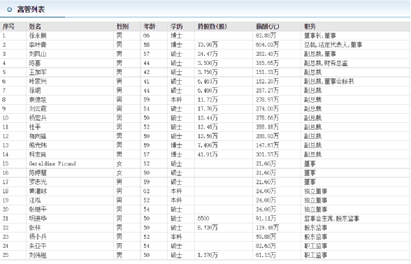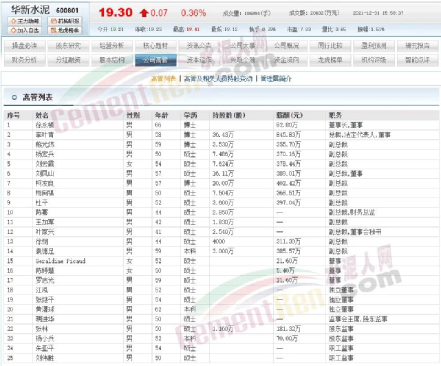 華新水泥高管薪酬
