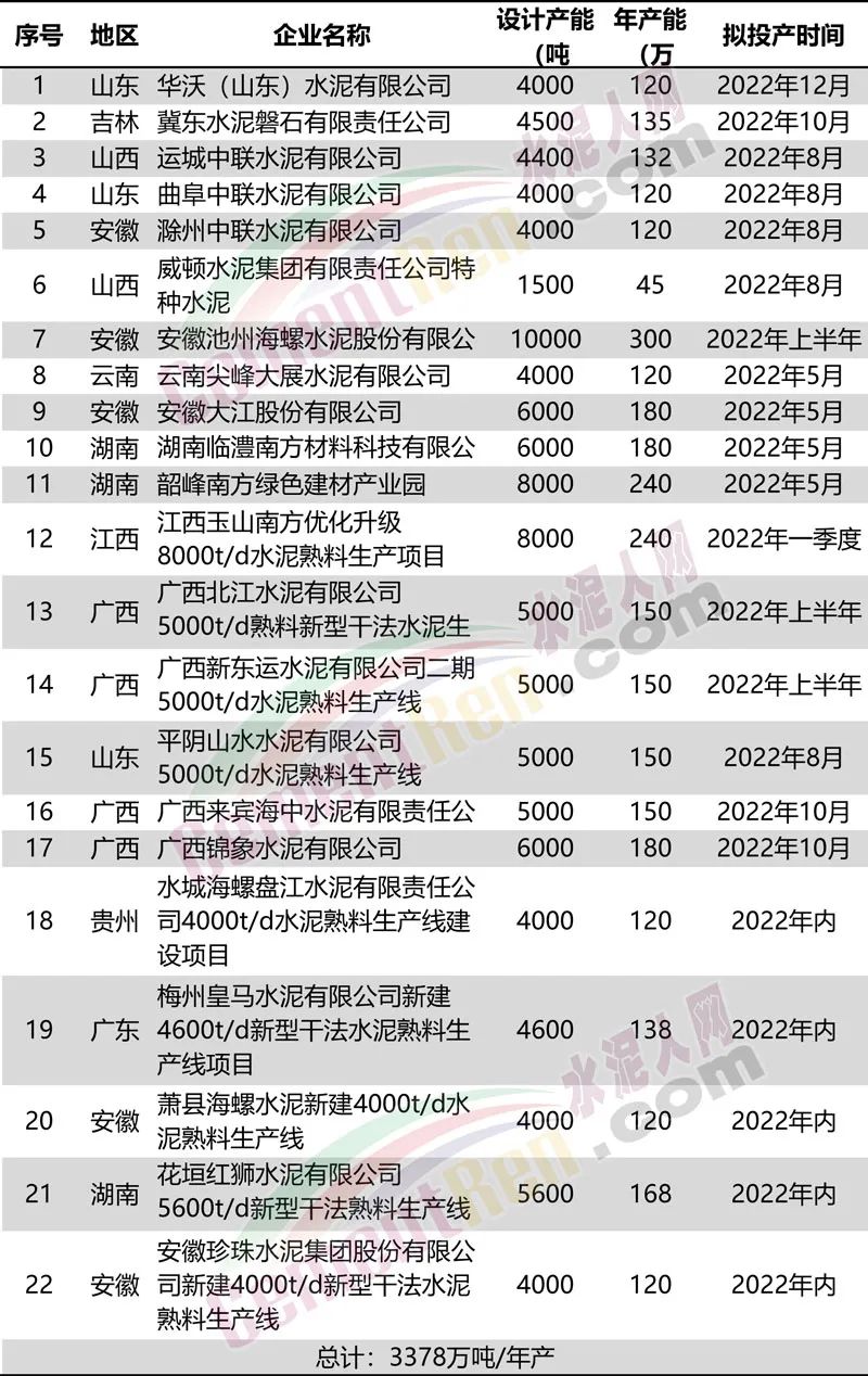 據水泥人網此前消息,2021年下半年點火投產的9個項目產能規(guī)模日產能達到52000噸,年產1560萬噸。而且全部達到綠色、智能、超低排放要求。(相關鏈接:“搶灘”!多條“智能化”水泥生產線集中點火!)
