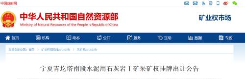 近日,自然資源部發(fā)布了關(guān)于寧夏青圪塔南段水泥用石灰?guī)rⅠ礦采礦權(quán)掛牌出讓結(jié)果公示。水泥人網(wǎng)從公示中得知寧夏豪龍建材以1.25億元競得了該礦山采礦權(quán)。