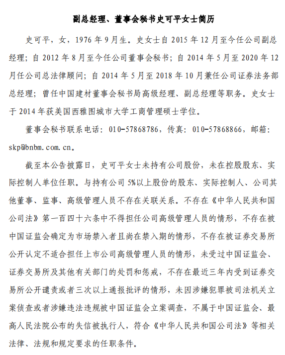 史可平、郝曉冬、楊正波、王帥、任利擔(dān)任副總經(jīng)理。