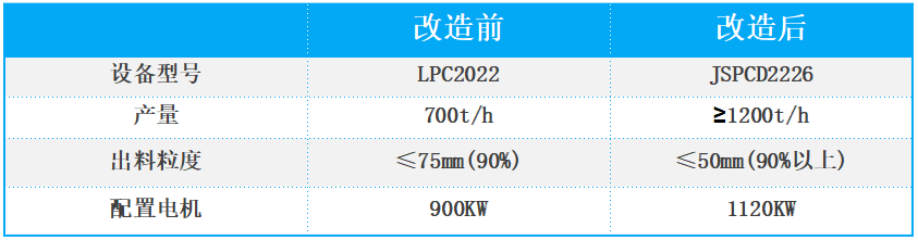 1、通過原破碎機改造,實現(xiàn)了提產(chǎn)、降耗,同時破碎后石料粒型實現(xiàn)了可控可調(diào),既能滿足水泥廠生料的需要,同時也可以滿足混凝土對骨料性能的需求。