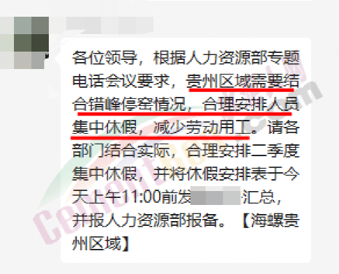 日前,海螺水泥貴州區(qū)域發(fā)通知稱,根據(jù)人力資源部專題電話會議要求,貴州區(qū)域需要結(jié)合錯峰停窯情況,合理安排人員集中休假,減少勞動用工。請各部門結(jié)合實際,合理安排二季度集中休假,并將休假安排表匯總報人力資源部報備。