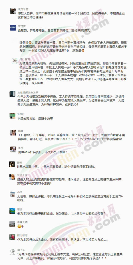 盡管絕大多數(shù)水泥企業(yè)在錯峰停產(chǎn),員工休假期間都會停發(fā)績效工資。但是水泥行業(yè)的“賺錢王”在錯峰生產(chǎn)時只發(fā)六百多元給員工還是引起了眾多網(wǎng)友的熱評: