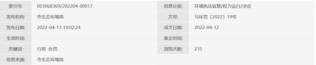 馬環(huán)罰〔2022〕19號