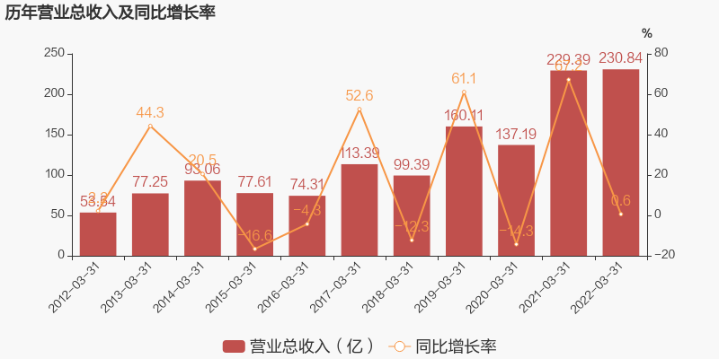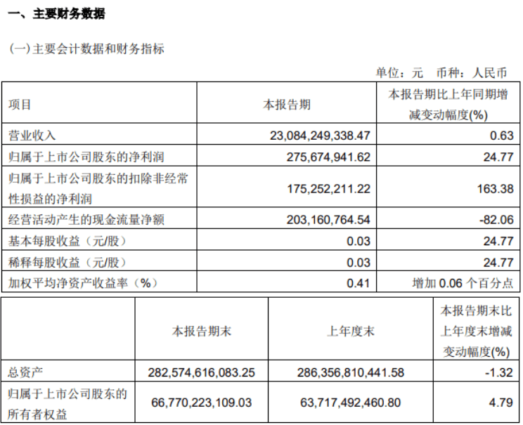同日晚間金隅集團(tuán)披露一季度業(yè)業(yè)績報(bào)告稱,公司2022年一季度實(shí)現(xiàn)營業(yè)總收入230.8億,同比增長0.6%;實(shí)現(xiàn)歸母凈利潤2.8億,同比增長24.8%;每股收益為0.03元。
