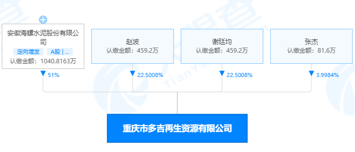 近日,重慶市多吉再生資源有限公司發(fā)生工商變更,新增股東海螺水泥持股51%成大股東。