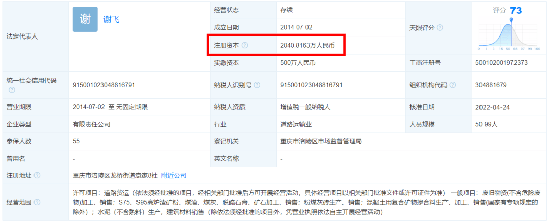 天眼查查詢結(jié)果顯示,重慶市多吉再生資源有限公司,成立于2014-07-02,注冊資本為2040.8163萬人民幣,法定代表人為謝飛,經(jīng)營狀態(tài)為存續(xù),工商注冊號為500102001972373,注冊地址為重慶市涪陵區(qū)龍橋街道袁家8社,經(jīng)營范圍包括許可項目:道路貨運(依法須經(jīng)批準的項目,經(jīng)相關(guān)部門批準后方可開展經(jīng)營活動,具體經(jīng)營項目以相關(guān)部門批準文件或許可證件為準) 一般項目:廢舊物資(不含危險廢物)加工、銷售;S75、S95高爐渣礦粉、煤渣、煤灰、脫硫石膏、礦石加工、銷售;粉煤灰磚生產(chǎn)、銷售;混凝土用復合礦物摻合料生產(chǎn)、加工、銷售(國家有專項規(guī)定的除外);水泥(不含熟料)生產(chǎn),建筑材料銷售(除依法須經(jīng)批準的項目外,憑營業(yè)執(zhí)照依法自主開展經(jīng)營活動)。