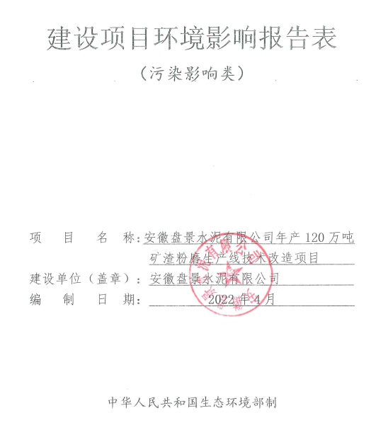 安徽盤景水泥礦渣配料產線改造環(huán)境影響報告表