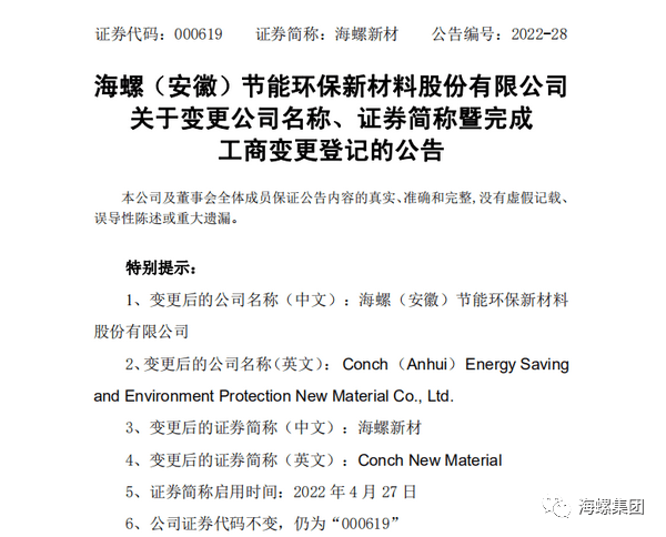 年初以來(lái),在海螺集團(tuán)的指導(dǎo)下,海螺新材積極推進(jìn)名稱及股票簡(jiǎn)稱變更具體工作,3月份完成了新名稱工商預(yù)核準(zhǔn),并經(jīng)公司年度董事會(huì)、年度股東大會(huì)審議通過(guò),于4月25日經(jīng)蕪湖市市場(chǎng)監(jiān)督管理局審核登記,領(lǐng)取了新的營(yíng)業(yè)執(zhí)照。