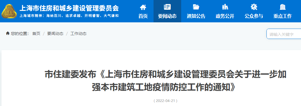 為全面貫徹落實(shí)市委、市政府疫情防控工作決策部署, 堅(jiān)持“動態(tài)清零”總方針不動搖,把建筑工地疫情社會面清零落到實(shí)處,堅(jiān)決遏制工地疫情反彈,市住房城鄉(xiāng)建設(shè)管理委發(fā)布了《上海市住房和城鄉(xiāng)建設(shè)管理委員會關(guān)于進(jìn)一步加強(qiáng)本市建筑工地疫情防控工作的通知》。