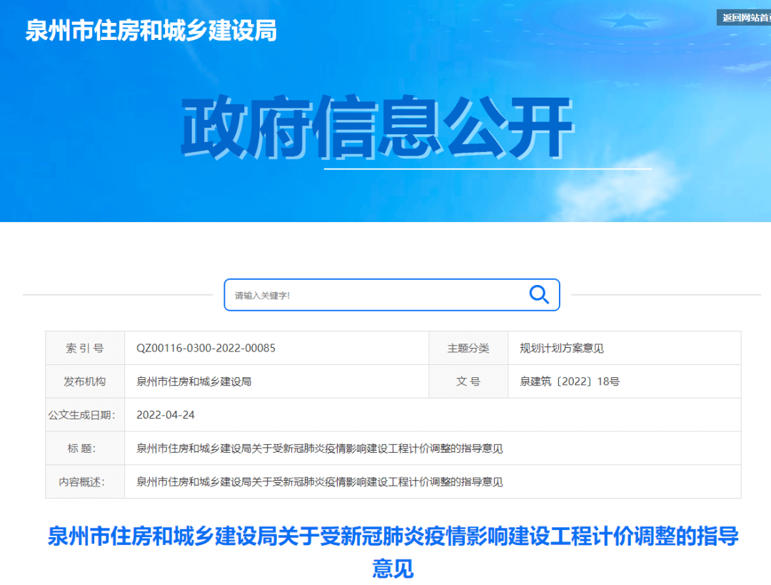 4月24日,泉州市住建局發(fā)布了《關(guān)于受新冠肺炎疫情影響建設(shè)工程計(jì)價調(diào)整的指導(dǎo)意見》。