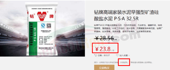 20袋P.S.A32.5R水泥合計476元,照此計算一噸P.S.A32.5水泥報價為595元。一經(jīng)銷商表示,現(xiàn)在大家都習(xí)慣了這種“減肥水泥”。部分裝修施工人員鉆空子以“20包一噸”計算。水泥合格,但是消費(fèi)者支付的材料單價卻“上漲”了。施工所需要的水泥也有可能增加了。原來用一噸水泥可以完成的施工,現(xiàn)在至少多五包才夠。這中間如有偷工減料發(fā)生,極有可能危及建筑物的安全,或出現(xiàn)配比不合格導(dǎo)致的“豆腐渣工程”。