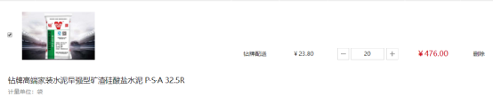 據(jù)查詢,鉆牌水泥官網(wǎng)報價顯示,P.S.A32.5R水泥凈含量40kg/袋,P.O42.5R水泥凈重45kg/袋。