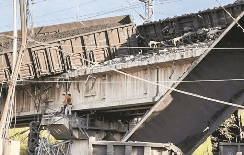 4月14日13時,在大秦鐵路翠屏山站(注:天津薊州段)停放的貨車車輛發(fā)生溜逸,與運行中的貨物列車相撞造成17輛貨車脫線,其中11輛墜落鐵路橋下,導致大秦鐵路中斷行車,無人員傷亡。