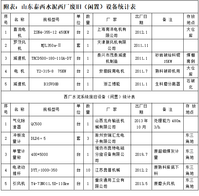 近日,山東泰西水泥有限公司委托水泥人網(wǎng)出售一批閑置物資,具體出售情況如下: