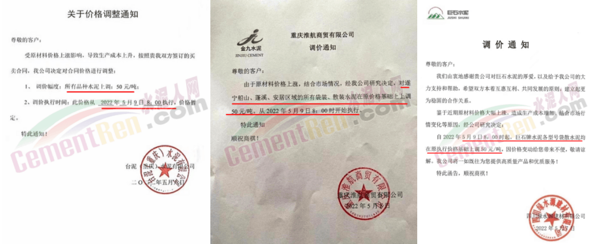 5月9日川渝地區(qū)多家企業(yè)水泥及熟料價(jià)格上調(diào)50元/噸。