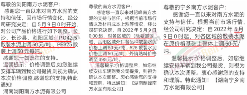 湖南區(qū)域包括海螺、紅獅、南方等主要品牌企業(yè)通知上調(diào)水泥價(jià)格50元/噸。