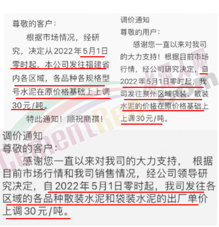 5月1日,福建主要品牌企業(yè)通知全區(qū)域“普漲30元/噸”。
