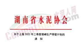 據(jù)水泥人網(wǎng)了解,早在4月13日,湖南省水泥協(xié)會就發(fā)布《關(guān)于上報2022年二季度錯峰生產(chǎn)停窯計劃的通知》,其中就有提到湖南省水泥熟料生產(chǎn)線自4月1日至5月31日期間,錯峰停窯15天。