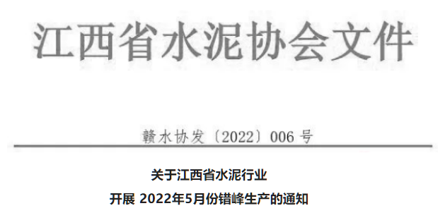 江西省發(fā)布關(guān)于水泥行業(yè)開展2022年5月份錯峰生產(chǎn)的通知,要求江西省境內(nèi)49條水泥熟料生產(chǎn)線5月10日00:00-5月19日24:00,錯峰生產(chǎn)10天。