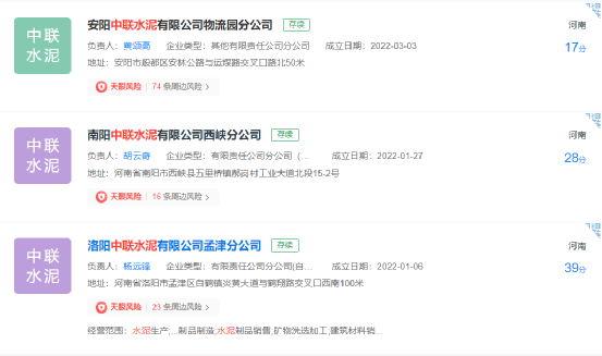 中聯(lián)水泥河南區(qū)域2022年內(nèi)成立三家分公司。分別為安陽(yáng)中聯(lián)水泥有限公司物流園分公司、南陽(yáng)中聯(lián)水泥有限公司西峽分公司、洛陽(yáng)中聯(lián)水泥有限公司孟津分公司三家企業(yè)。