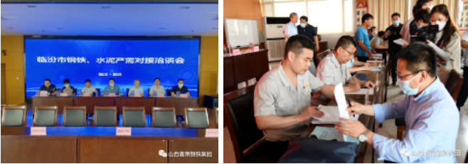 5月28日,山西臨汾市鋼鐵、水泥產(chǎn)需對(duì)接洽談會(huì)在晉南集團(tuán)召開。9家鋼鐵、水泥生產(chǎn)供應(yīng)企業(yè)、10家重點(diǎn)項(xiàng)目建設(shè)單位、8家交通運(yùn)輸項(xiàng)目建設(shè)單位、32家市政及房地產(chǎn)項(xiàng)目建設(shè)單位參加洽談會(huì)。