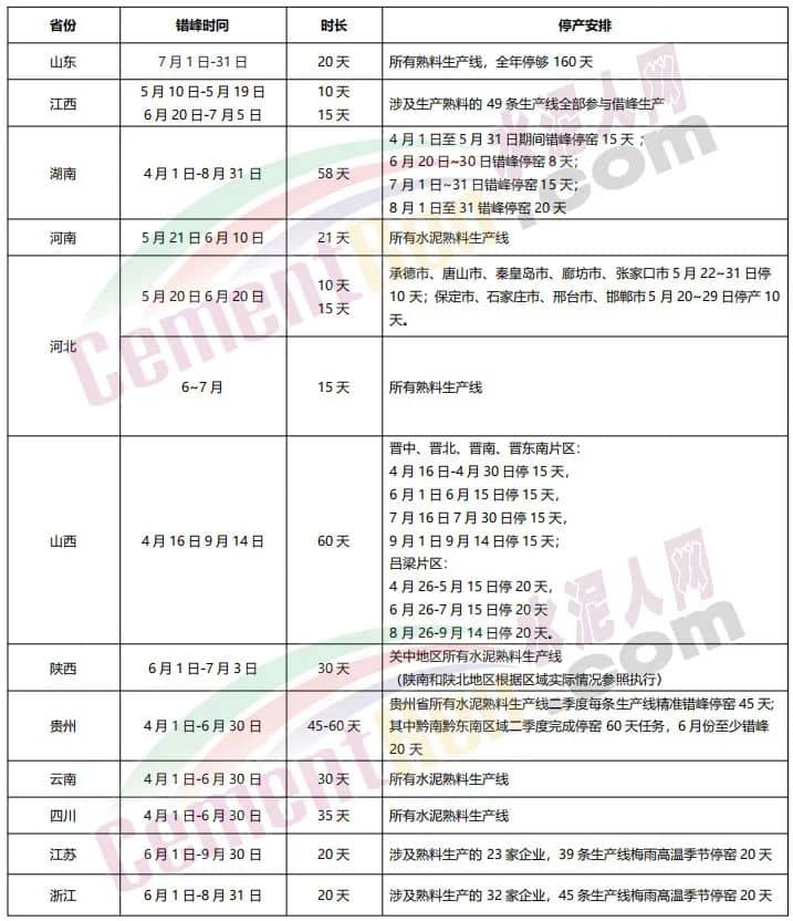 此前,貴州、陜西等地已發(fā)布二季度水泥停窯計劃安排,不少地區(qū)停窯時間超過1個月。