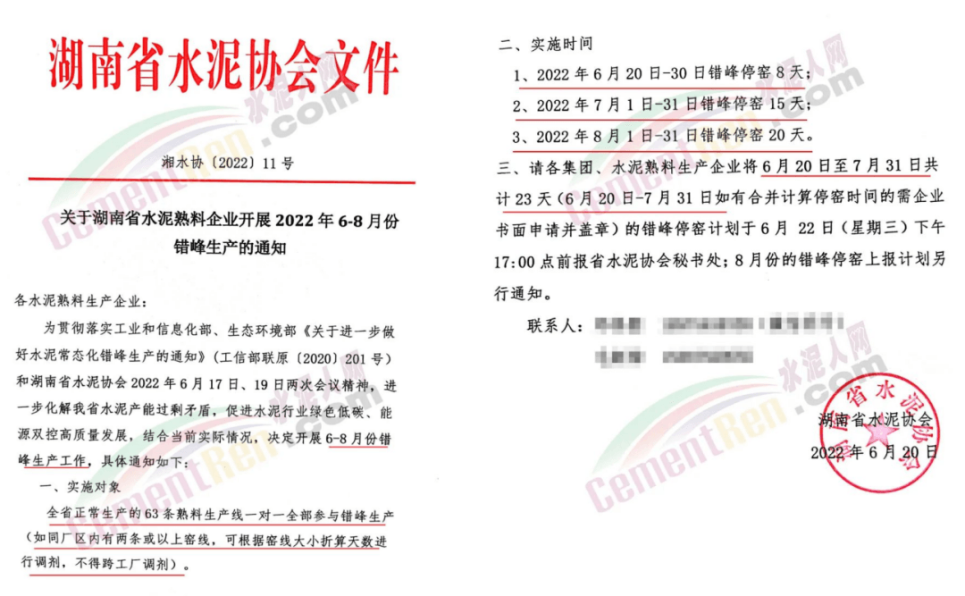 湖南省水泥協(xié)會日前通知,水泥熟料企業(yè)于2022年6-8月開展錯峰生產(chǎn),全省正常生產(chǎn)的63條熟料生產(chǎn)線全部參與錯峰生產(chǎn),同廠區(qū)內(nèi)有兩條或以上窯線的,可根據(jù)窯線大小折算天數(shù)進行調(diào)劑,不得跨工廠調(diào)劑。停窯時間合計43天。其中,7月份停窯15天,8月份停窯20天。