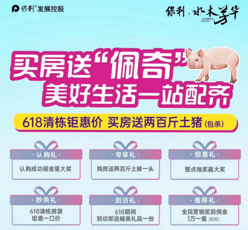江蘇連云港海州區(qū)保利的一個(gè)樓盤推出活動(dòng),買房送一只 200 斤的土豬,還包殺。