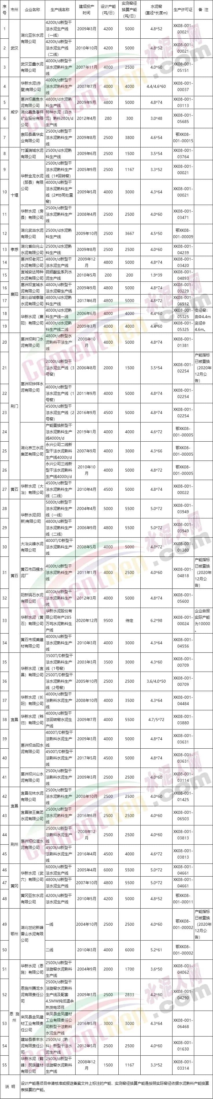2021年度湖北省水泥熟料生產(chǎn)線清單