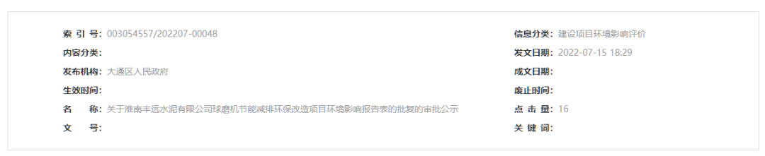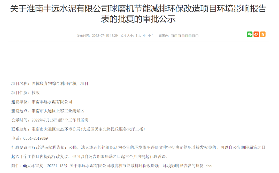 你單位報送的《淮南豐遠(yuǎn)水泥有限公司球磨機(jī)節(jié)能減排環(huán)保改造項目環(huán)境影響報告表》(以下簡稱《報告表》)收悉。根據(jù)國家建設(shè)項目環(huán)境影響評價管理有關(guān)規(guī)定,經(jīng)審查,批復(fù)如下: