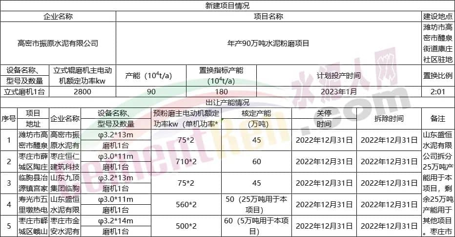 年產(chǎn)90萬噸水泥粉磨項目產(chǎn)能置換情況表