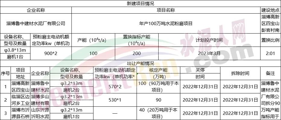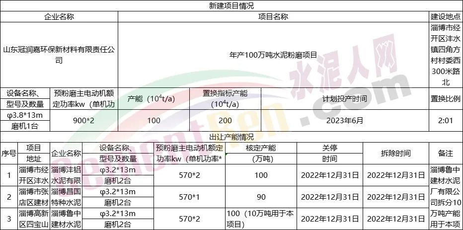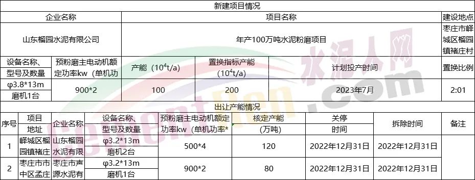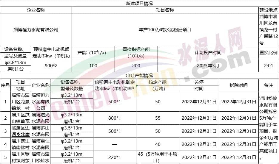 年產(chǎn)100萬噸水泥粉磨項目產(chǎn)能置換情況表