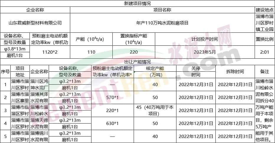 年產(chǎn)120萬噸水泥粉磨項目產(chǎn)能置換情況